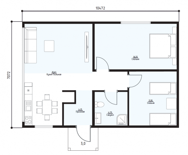 • Общая площадь 74 м2