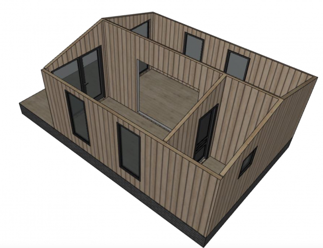 Готовые элементы каркаса, сделанные по проекту. В цену входит монтаж. Детали изготовлены в теплом и сухом цеху на специальном оборудовании. Останется только установить окна и дверь.
