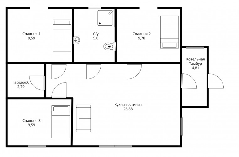 5. Утепление: Утеплитель - минеральная вата. В стене 150мм, в крыше 200мм. Плотность - от 35 кг/м3.