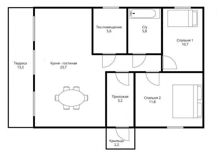 • Количество спален 2